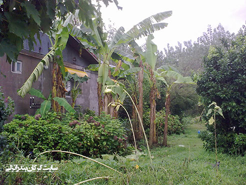درختان موز در منزل عین الله رمضانی در روستای کرکان متاسفانه به علت آب و هوای منطقه موزها نارس خراب میشون