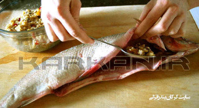 ماهی رو پاک کنید و از کمر اون رو پاره کنید و خوب بشورید .اگه ماهیتون رو از شبه قبل نمک و سیر رنده شده بمالید و ادویه هم بزنید بهتر میشه.