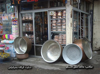 عکس راستۀ مسگرانِ رشت (البته متاسفانه فقط این فروشگاه لوازم مسی ماشینی باقی مانده)