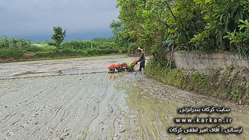 آقای علی نیکوش در حال نشا مکانیزه برنج