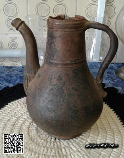 این ظرف مربوط به زمان رضاشاه می باشد که هم اکنون در روستای کرکان توسط یکی از اهالی نگه داری می شود